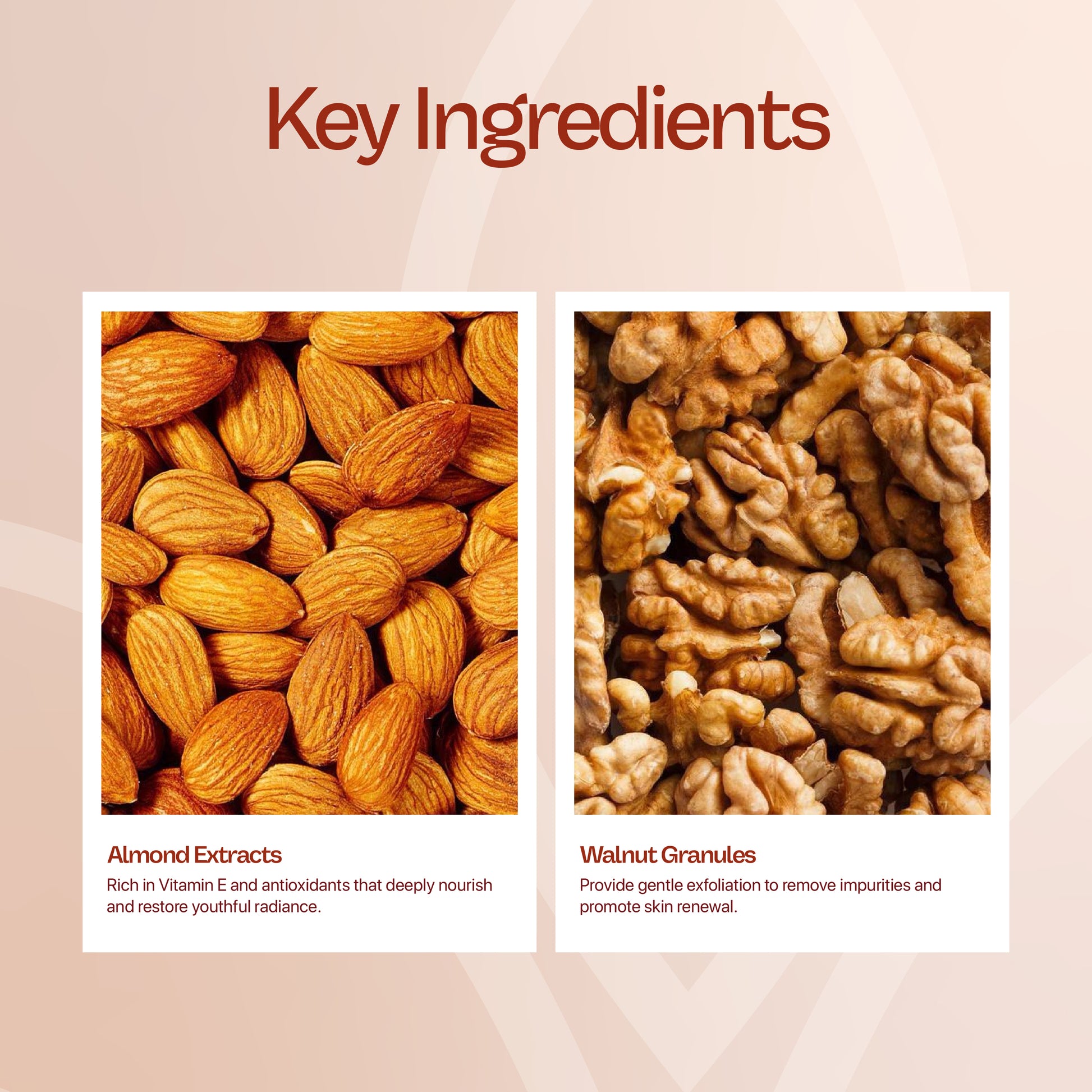 Almond Face Scrub is infused with natural almond granules and nourishing oils that gently exfoliate dead skin cells and impurities. Rich in vitamin E and antioxidants, it helps improve skin texture, unclog pores, and restore natural radiance.