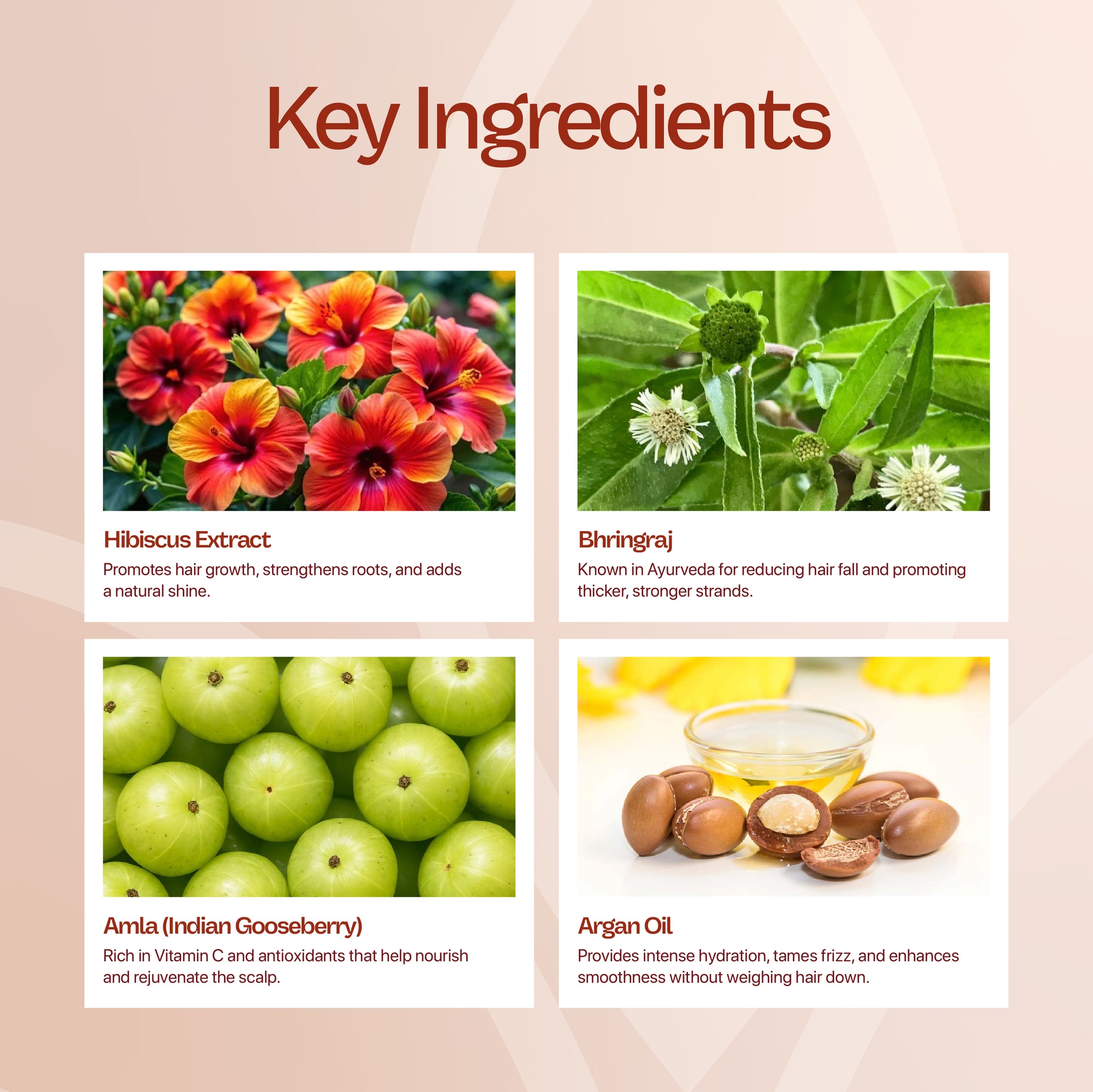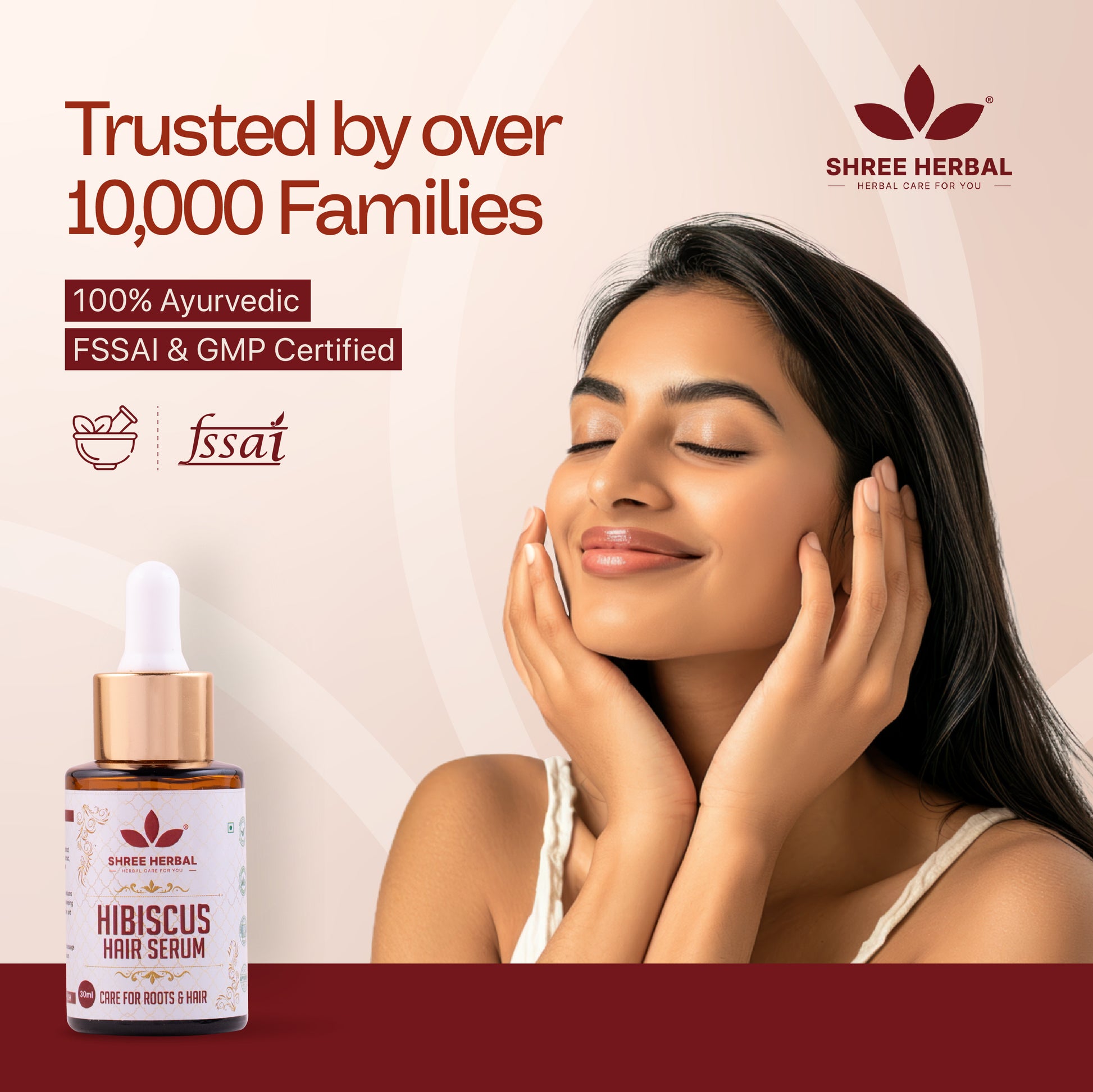 Hibiscus is a key Keshya agent, providing Bala (strength) to the Kesha Moola (roots) while enhancing the hair's natural Prabha (luster) and vitality.