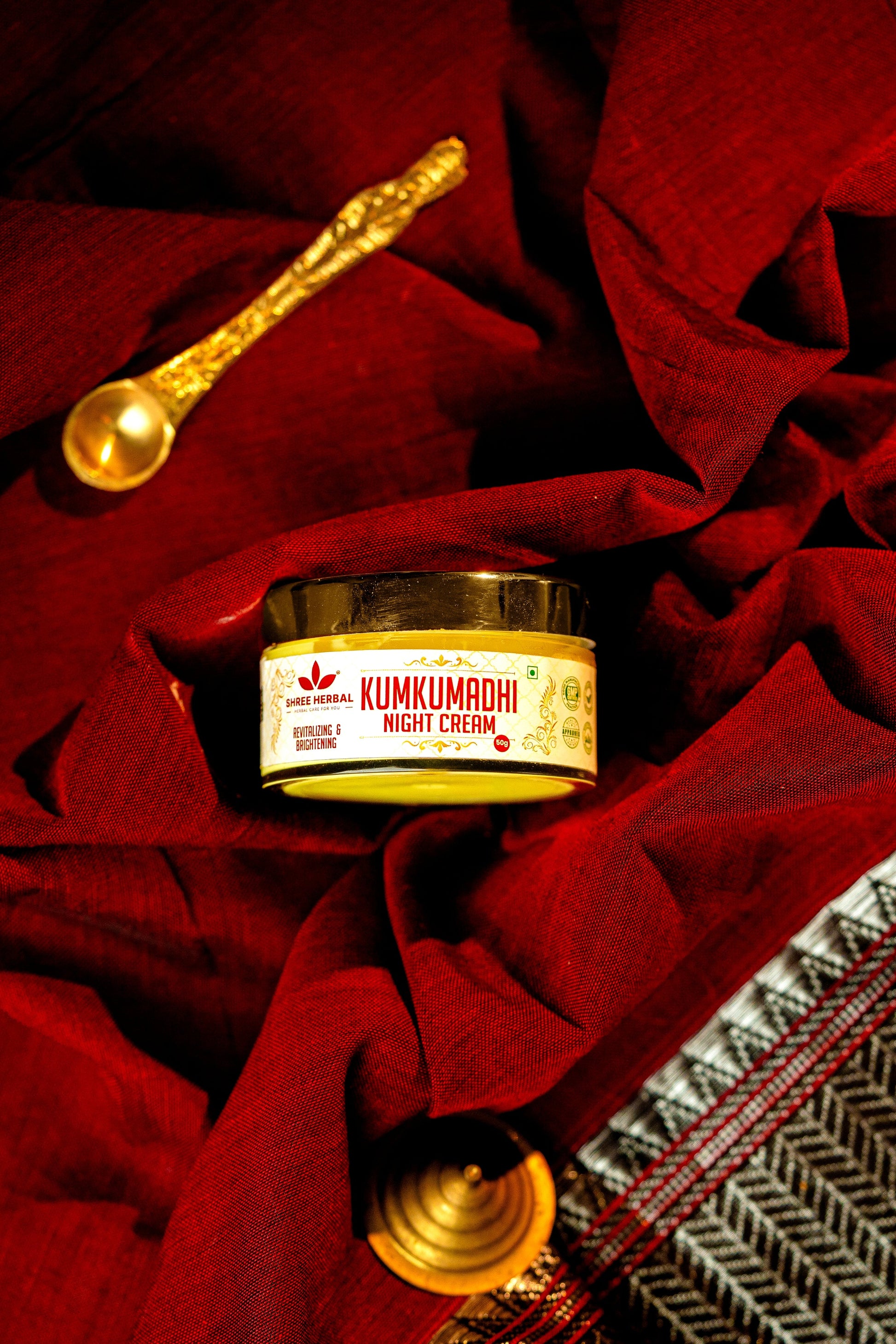 This opulent Ratricharya Lepa (night application/cream) is an exquisite blend rooted in classical Ayurvedic Rasayana (rejuvenation) therapy, designed to nourish and renew the Tvak (skin) as you rest. Infused with Kumkuma (Saffron), Chandana (Sandalwood), Haridra (Turmeric), and Manjistha, it is a comprehensive formula for Varnya (complexion improvement) and deep tissue Poshan (nourishment). It works diligently overnight: Saffron and Turmeric normalize Brajaka Pitta to even skin tone and reduce Vyanga (spots), while the cooling nature of Sandalwood and the richness of Cow Ghee provide profound Snehana (oleation) and Pitta-Shamana (heat pacification). The result is soft, rejuvenated skin with a radiant morning glow (Prabha).