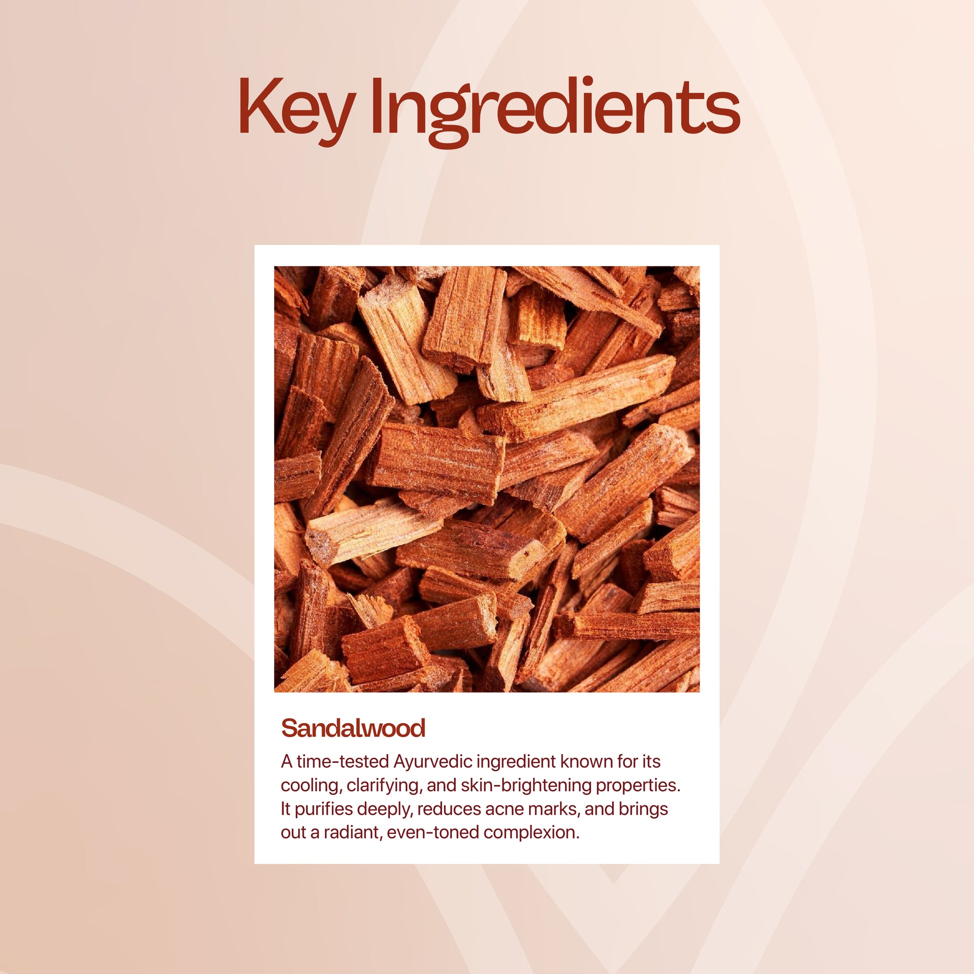Sandalwood Extract contains α-santalol, known for its cooling and anti-inflammatory action, which soothes heat-stressed skin and restores freshness.